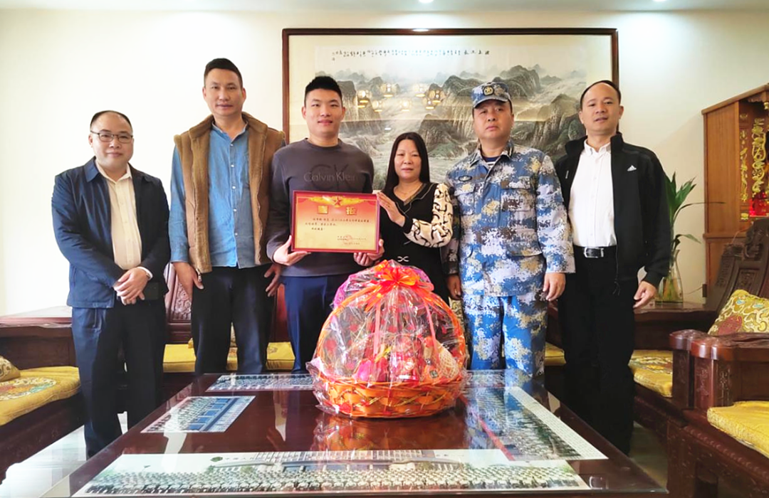 港口鎮(zhèn)向榮立三等功的現(xiàn)役軍人林澤鵬及其父母送去立功喜報(bào)。