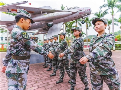 “向右看齊!向前看!現(xiàn)在教你們軍人隊(duì)列動(dòng)作中的脫帽戴帽要領(lǐng)……”3月21日下午,在中山市國(guó)防教育基地訓(xùn)練場(chǎng)上,一支七人訓(xùn)練小隊(duì)顯得格外特別,她們是今年上半年應(yīng)征入伍的中山女兵:梁晶、馮妙瑩、藍(lán)宇瑩、陳琬琪、溫黎嘉茵、劉燕彤、蘇汶詩(shī)。 她們都是00后女大學(xué)生,身著迷彩服,精神抖擻地在教官羅偉進(jìn)的帶領(lǐng)下有序而緊張地開(kāi)展隊(duì)列訓(xùn)練?!捌叨浣鸹ā鼻酀赡鄣哪樕蠈?xiě)滿了對(duì)軍旅生活的向往和期待。她們將通過(guò)幾天的役前教育訓(xùn)練,邁出軍旅生活第一步。 ■五次報(bào)名應(yīng)征終圓夢(mèng) 七朵金花中,沙溪鎮(zhèn)占據(jù)兩席名額,她們分別是藍(lán)宇瑩和劉燕彤。沙溪鎮(zhèn)武裝部工作人員劉偉立說(shuō):“從歷年來(lái)看,這次是我們鎮(zhèn)出女兵人數(shù)最多的一次。其中,龍聚環(huán)村民小組更是出兵大戶,幾乎每年都有男女兵從這里出?!?/p> 身高1.7米的劉燕彤就來(lái)自沙溪鎮(zhèn)樂(lè)群村(龍聚環(huán)村民小組),就讀于廣東海洋大學(xué),是一名大二學(xué)生?!拔矣洃浿忻看未謇镉腥水?dāng)兵入伍,都會(huì)舉行隆重的送兵儀式,整個(gè)村子鑼鼓喧天鞭炮齊鳴,還有舞獅表演助陣,好熱鬧。很小的時(shí)候我就覺(jué)得當(dāng)兵很威風(fēng)很光榮,在我心里也就埋下了要當(dāng)兵的種子?!眲⒀嗤f(shuō):“我對(duì)部隊(duì)生活充滿了期待,進(jìn)入部隊(duì)后我希望自己能考上軍校留在部隊(duì)長(zhǎng)期發(fā)展?!?/p> 藍(lán)宇瑩來(lái)自沙溪鎮(zhèn)匯源社區(qū),就讀于廣東技術(shù)師范大學(xué),是一名大三學(xué)生。她曾在網(wǎng)上報(bào)名應(yīng)征了5次,可見(jiàn)其參軍入伍決心之大。“我從小就很崇拜軍人,從小學(xué)一直到大學(xué)都是學(xué)校國(guó)旗護(hù)衛(wèi)隊(duì)的隊(duì)員?!彼{(lán)宇瑩表示,幸運(yùn)的是今年3月份,自己終于圓夢(mèng)軍營(yíng)即將前往某戰(zhàn)區(qū)海軍服役。 藍(lán)宇瑩的母親錢梅香表示:“我非常支持女兒的決定,感覺(jué)入伍對(duì)女生來(lái)說(shuō)是一種很好的鍛煉。如果有機(jī)會(huì),我還想讓小兒子上大學(xué)后也進(jìn)入部隊(duì)參軍報(bào)國(guó),向姐姐學(xué)習(xí)。” ■對(duì)軍營(yíng)生活充滿期待 七朵金花中,來(lái)自南朗街道下沙村的馮妙瑩就讀于廣東醫(yī)科大學(xué),今年6月份大學(xué)畢業(yè)?!拔覀冏黾议L(zhǎng)的就是希望她入伍后好好干,加油努力?!瘪T妙瑩的父親不善言辭,非常支持女兒的從軍決定,“我年輕時(shí)也想當(dāng)兵,但身體條件不合格,錯(cuò)失了機(jī)會(huì)。” “我大一就加入了學(xué)校國(guó)旗護(hù)衛(wèi)隊(duì),通過(guò)日復(fù)一日的隊(duì)列訓(xùn)練,開(kāi)始向往激情如火的軍營(yíng)生活?!瘪T妙瑩告訴記者,“對(duì)即將到來(lái)的部隊(duì)生活,既期待又有點(diǎn)擔(dān)心。擔(dān)心去到一個(gè)陌生的環(huán)境會(huì)不適應(yīng),但既然選擇了這條路,我一定會(huì)克服困難,堅(jiān)持下去,爭(zhēng)取留在部隊(duì)發(fā)展,早日成為一名優(yōu)秀軍人?!?/p> 來(lái)自民眾街道的梁晶就讀于南華大學(xué),今年6月即將大學(xué)畢業(yè)。她剛進(jìn)入大一就提交了入黨申請(qǐng)書(shū),2022年正式成為一名共產(chǎn)黨員。梁晶說(shuō):“2021年河南特大暴雨期間,通過(guò)新聞媒體看到中國(guó)軍人逆流而上,連夜出征轉(zhuǎn)移群眾的場(chǎng)景讓我深受感動(dòng)。那時(shí)起,我就萌生了參軍的想法?!毙疫\(yùn)的是,她今年終于圓夢(mèng)軍營(yíng),她表示:“面對(duì)未知的軍營(yíng)生活,我已經(jīng)作好了心理準(zhǔn)備。進(jìn)入部隊(duì)后,我一定會(huì)好好適應(yīng),有信心能在部隊(duì)干好?!?/p> 臨近傍晚,一天的訓(xùn)練就要結(jié)束了,中山市國(guó)防教育基地門口上方一條寫(xiě)著“保家衛(wèi)國(guó)終不悔,綠色軍營(yíng)獻(xiàn)青春”的紅色橫幅迎風(fēng)招展,不遠(yuǎn)處的軍營(yíng)生活正等著中山這“七朵金花”的到來(lái),她們也在憧憬著…… 記者 張倩 ◆編輯:龍慧◆二審:鄭沛鋒◆三審:周亞平 |