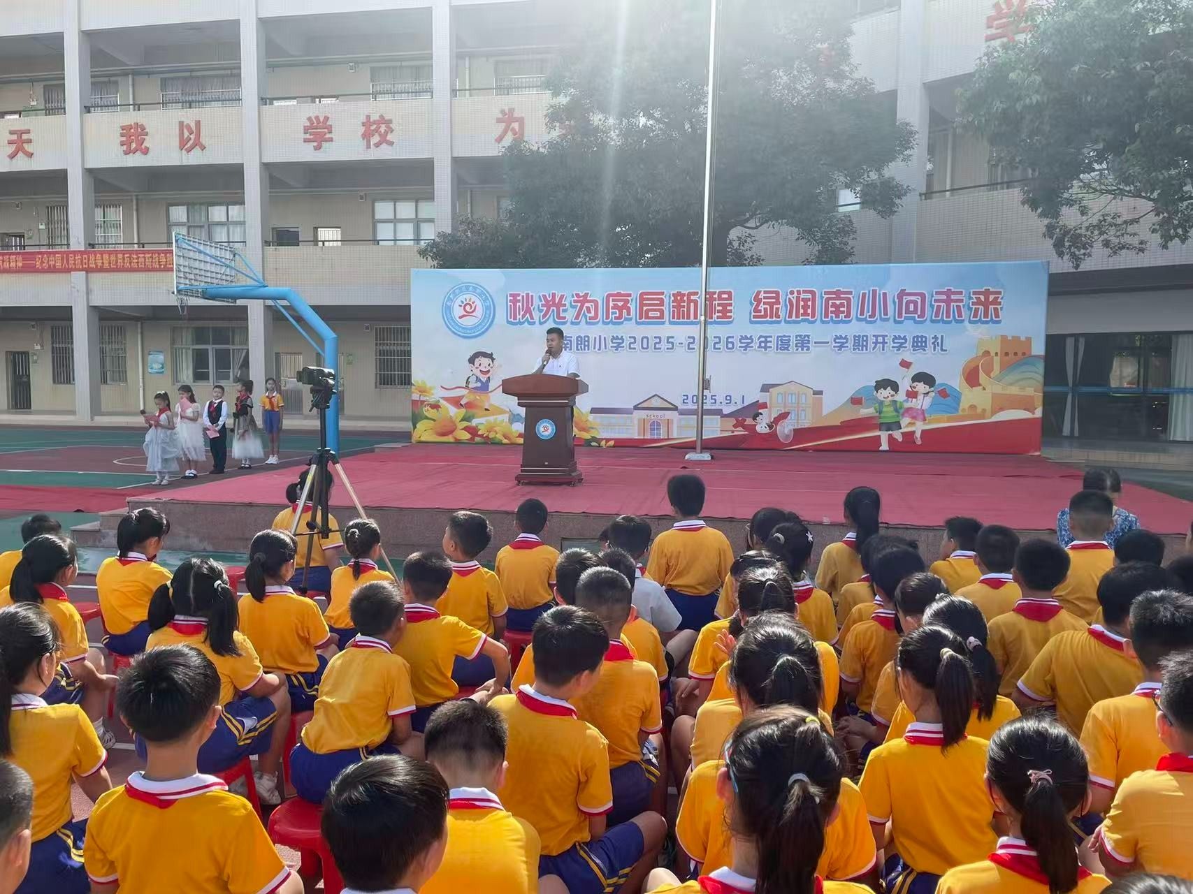 9月1日,中山南朗街道南朗小學(xué)舉行秋季學(xué)期開(kāi)學(xué)典禮。開(kāi)學(xué)典禮以紀(jì)念中國(guó)人民抗日戰(zhàn)爭(zhēng)暨世界反法西斯戰(zhàn)爭(zhēng)勝利80周年為主題,把愛(ài)國(guó)主義教育作為新學(xué)期的“開(kāi)學(xué)第一課”,帶領(lǐng)同學(xué)們回望烽火歲月,弘揚(yáng)偉大抗戰(zhàn)精神。 南朗街道南朗小學(xué)黨支部書(shū)記、校長(zhǎng)杜少君為同學(xué)們講述了可歌可泣的抗戰(zhàn)故事。簡(jiǎn)文祥 攝開(kāi)學(xué)典禮上,南朗街道南朗小學(xué)黨支部書(shū)記、校長(zhǎng)杜少君以《銘記偉大勝利,傳承抗戰(zhàn)精神——紀(jì)念中國(guó)人民抗日戰(zhàn)爭(zhēng)暨世界反法西斯戰(zhàn)爭(zhēng)勝利80周年》為題,講述了可歌可泣的抗戰(zhàn)故事,為全體師生上了一堂生動(dòng)的思政第一課。 92歲的老校長(zhǎng)程民興受邀來(lái)到學(xué)校,他以親歷者的身份為同學(xué)們講述校園經(jīng)歷的抗戰(zhàn)故事。簡(jiǎn)文祥 攝南朗小學(xué)的前身是安定學(xué)校,也是1943年南朗安定戰(zhàn)斗的核心遺址?;顒?dòng)當(dāng)日,92歲的老校長(zhǎng)程民興受邀來(lái)到學(xué)校,他以親歷者的身份為同學(xué)們講述校園經(jīng)歷的抗戰(zhàn)故事,讓過(guò)去的歷史多了份可觸的溫度。“日本飛機(jī)轟炸安定學(xué)校時(shí),瓦片碎裂的聲響至今仍在耳畔回響,那次轟炸,我險(xiǎn)些沒(méi)能活下來(lái)?!彼嬖V同學(xué)們,日寇占據(jù)安定學(xué)校后,把兩層教學(xué)樓改造成堡壘,墻外布滿帶刺的鐵絲網(wǎng),槍口日夜對(duì)著村口;那時(shí)他就躲在閣樓里,親眼看見(jiàn)二樓窗口常年架著機(jī)槍,夜里探照燈掃過(guò)田野時(shí),全村人都屏息凝神,不敢發(fā)出半點(diǎn)聲響。 如今,程民興的兒女們?cè)趪?guó)外生活,孩子們想要接他出國(guó),但他卻執(zhí)意留在國(guó)內(nèi)。他告訴同學(xué)們:“你們看,咱們現(xiàn)在的日子多好啊——吃的、用的樣樣齊全,出門(mén)不管是坐車還是騎車,去哪兒都特別方便;再瞧瞧你們的校園,環(huán)境優(yōu)美,設(shè)備先進(jìn)。同學(xué)們一定要珍惜這么好的學(xué)習(xí)環(huán)境,認(rèn)真讀書(shū),增長(zhǎng)本領(lǐng),祖國(guó)的建設(shè)以后就要靠你們了?!?/p> 杜少君帶領(lǐng)孩子們到南朗小學(xué)操場(chǎng)保留的帶彈孔的殘墻,講述抗戰(zhàn)往事。簡(jiǎn)文祥 攝 活動(dòng)最后,杜少君特意帶領(lǐng)孩子們到南朗小學(xué)操場(chǎng)保留的帶彈孔的殘墻,觸摸那些深淺不一的彈痕。他指向殘墻旁生長(zhǎng)的綠植說(shuō)道:“這片曾被戰(zhàn)火灼燒的土地,如今已長(zhǎng)出繁榮的新綠。烈士們用生命守護(hù)的家園,正在一代代人的手中變得更好?!庇|摸彈痕的那一刻,同學(xué)們仿佛在與歷史對(duì)話:傳承偉大抗戰(zhàn)精神,不是一句口號(hào),而是要接過(guò)前輩的接力棒,在新時(shí)代為家鄉(xiāng)、為祖國(guó)奮斗。 校園操場(chǎng)、紅色地標(biāo)、親歷者、戰(zhàn)斗遺址串聯(lián)起一堂行走的思政課。杜少君說(shuō):“讓孩子們?cè)跉v史現(xiàn)場(chǎng)觸摸過(guò)去,才能真正理解‘銘記’的意義。偉大抗戰(zhàn)精神的傳承,就藏在每一次駐足、每一次傾聽(tīng)、每一次思考里?!?/p> 通訊員:于銳 簡(jiǎn)文祥 ◆編輯:吳玉珍◆二審:鄭沛鋒◆三審:周亞平 文盾校對(duì)——用科技,守文字 |