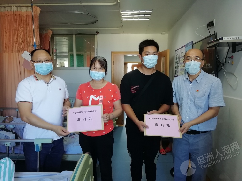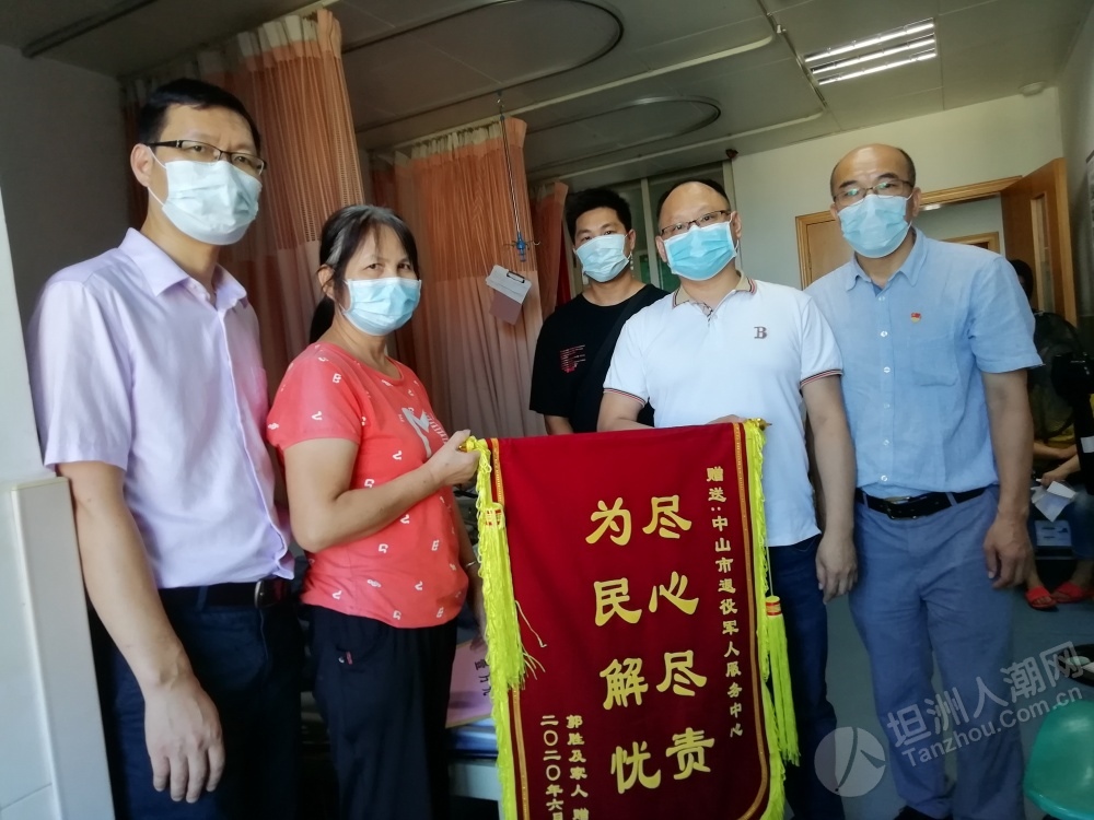近日,中山市首個應急救助資金申請已通過省退役軍人事務廳審核,坦洲籍退役軍人郭叔獲得了應急救助資金1萬元。該筆應急救助資金于日前由省退役軍人事務廳按照規(guī)定程序撥付到申請人個人賬戶。 6月18日,中山市、坦洲鎮(zhèn)兩級退役軍人服務中心及坦洲社會事務局相關負責人一行到坦洲醫(yī)院對郭叔進行慰問,告知他申請的應急救助資金已由省退役軍人事務廳撥付到賬,叮囑他要聽從醫(yī)生的囑咐,積極配合康復治療,樹立起戰(zhàn)勝疾病的勇氣和信心。郭叔家人特地制作了一面錦旗送到中山市退役軍人服務中心主任張波手中,由衷表達了對市、鎮(zhèn)、村各級退役軍人服務中心(站)的感激之情。