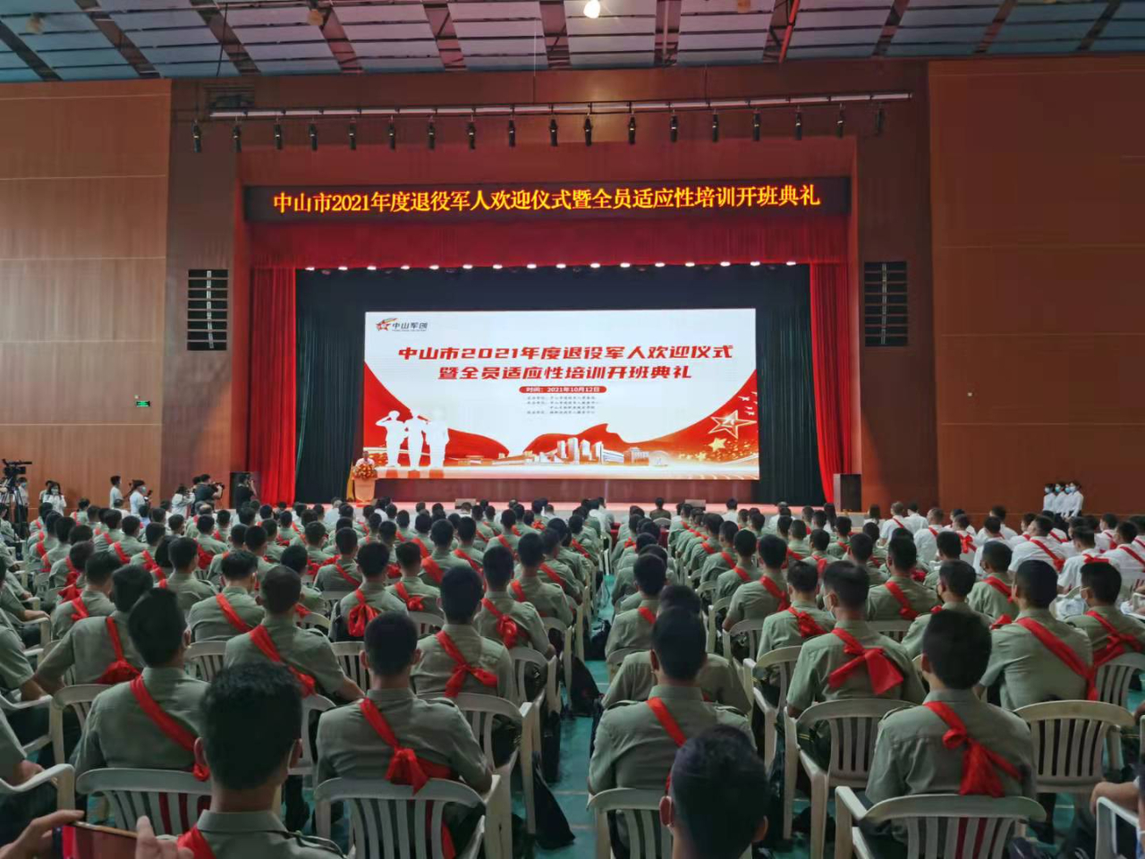 10月12日,在嘹亮的軍歌聲中,中山市退役軍人事務(wù)局在中山火炬職業(yè)技術(shù)學(xué)院為今年返鄉(xiāng)的500多名退役軍人舉行了隆重的退役軍人歡迎儀式,副市長(zhǎng)劉云梅出席活動(dòng)并致辭。 退役軍人歡迎儀式邀請(qǐng)了2021年度優(yōu)秀退役軍人代表伍嘉怡同志和優(yōu)秀退役軍人創(chuàng)業(yè)代表曹鵬同志發(fā)言,并正式啟動(dòng)中山市退役軍人就業(yè)創(chuàng)業(yè)聯(lián)盟,中山火炬職業(yè)技術(shù)學(xué)院黨委委員、副院長(zhǎng)岳巧云做了適應(yīng)性培訓(xùn)開班動(dòng)員講話。