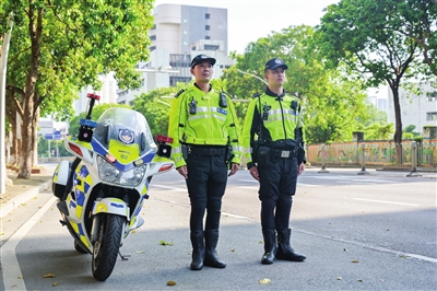 ▲鐵騎隊(duì)員李劍鋒(左)、繆輝航(右)退伍從警后繼續(xù)發(fā)光發(fā)熱。