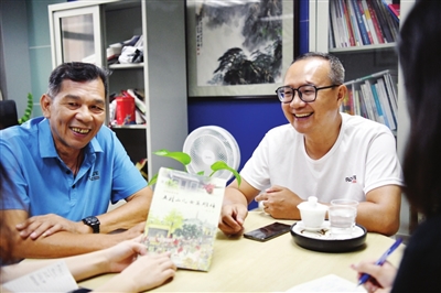 ▲“珠縱后代”黃躍進(jìn)(右)和蕭亮忠(左)被聘為五桂山首批國防教育輔導(dǎo)員,讓紅色精神代代傳。