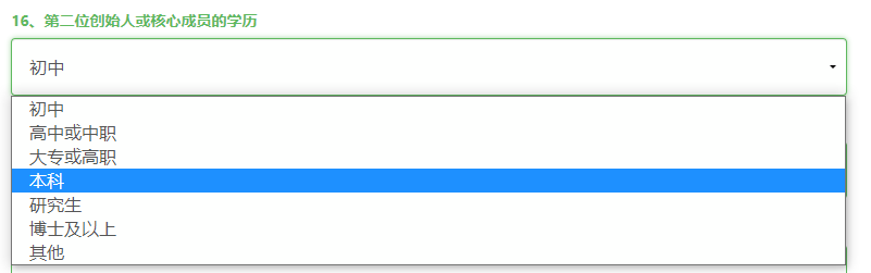 圖10 07 填寫報(bào)名表 學(xué)歷一欄系統(tǒng)默認(rèn)為“初中”,如需修改,點(diǎn)擊可跳出其他內(nèi)容選項(xiàng),按實(shí)際情況選擇即可。注意根據(jù)內(nèi)容提示填寫相應(yīng)正確信息,有“*”標(biāo)志的為必填內(nèi)容,注意退役軍人轉(zhuǎn)業(yè)證/退伍證掃描件上傳附件不得超過10M,商業(yè)計(jì)劃書上傳附件不得超過30M。報(bào)名表所有項(xiàng)目內(nèi)容格式須完全填寫正確才可成功上傳。如圖11-12所示: