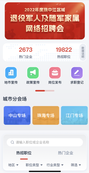 ▲掃碼進入2022年度珠中江區(qū)域退役軍人及隨軍家屬網(wǎng)絡招聘會。