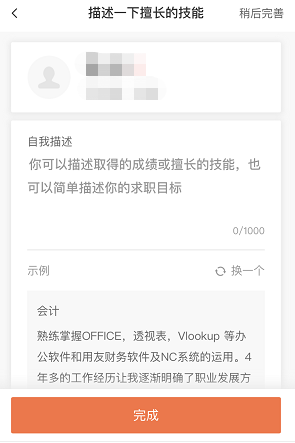 2、注冊賬號 未注冊登陸的求職者將自動跳轉到注冊頁面,完善相關信息后點擊【完成】按鈕完成注冊流程。