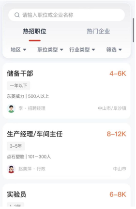 ▲求職者注冊流程 3、投遞簡歷 完善注冊信息后,即可跳轉至【2022年度珠中江區(qū)域退役軍人及隨軍家屬網(wǎng)絡招聘會】,點擊職位名稱可進入相應職位詳情頁,點擊企業(yè)可進入企業(yè)詳情頁,可查看企業(yè)發(fā)布的在線職位。 點擊職位詳情頁左下方【立即溝通】可和HR進行溝通,點擊右下方【投遞簡歷】即可完成投遞。