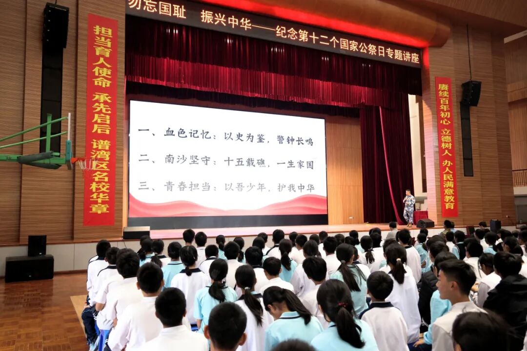 活動(dòng)邀請(qǐng)中山港口鎮(zhèn)人民武裝部副部長(zhǎng)賀洪彪以《銘記歷史守海疆 青春立志報(bào)家國(guó)》為題開展專題講座,帶領(lǐng)師生重溫南京大屠殺那段山河破碎的屈辱歷史,闡釋國(guó)家公祭日的設(shè)立意義,讓師生深刻理解“銘記歷史、勿忘國(guó)恥”的意義?,F(xiàn)場(chǎng)莊嚴(yán)肅穆,全體師生為南京大屠殺死難同胞默哀,用無(wú)聲的敬意寄托對(duì)逝者的哀思。 會(huì)上,賀洪彪結(jié)合自身十五載南沙守礁經(jīng)歷,講述“以礁為家、以苦為榮”的崢嶸歲月,用軍人的忠誠(chéng)與信仰,詮釋新時(shí)代國(guó)防衛(wèi)士守護(hù)家國(guó)的責(zé)任擔(dān)當(dāng),讓師生們真切感受到和平生活的來(lái)之不易。