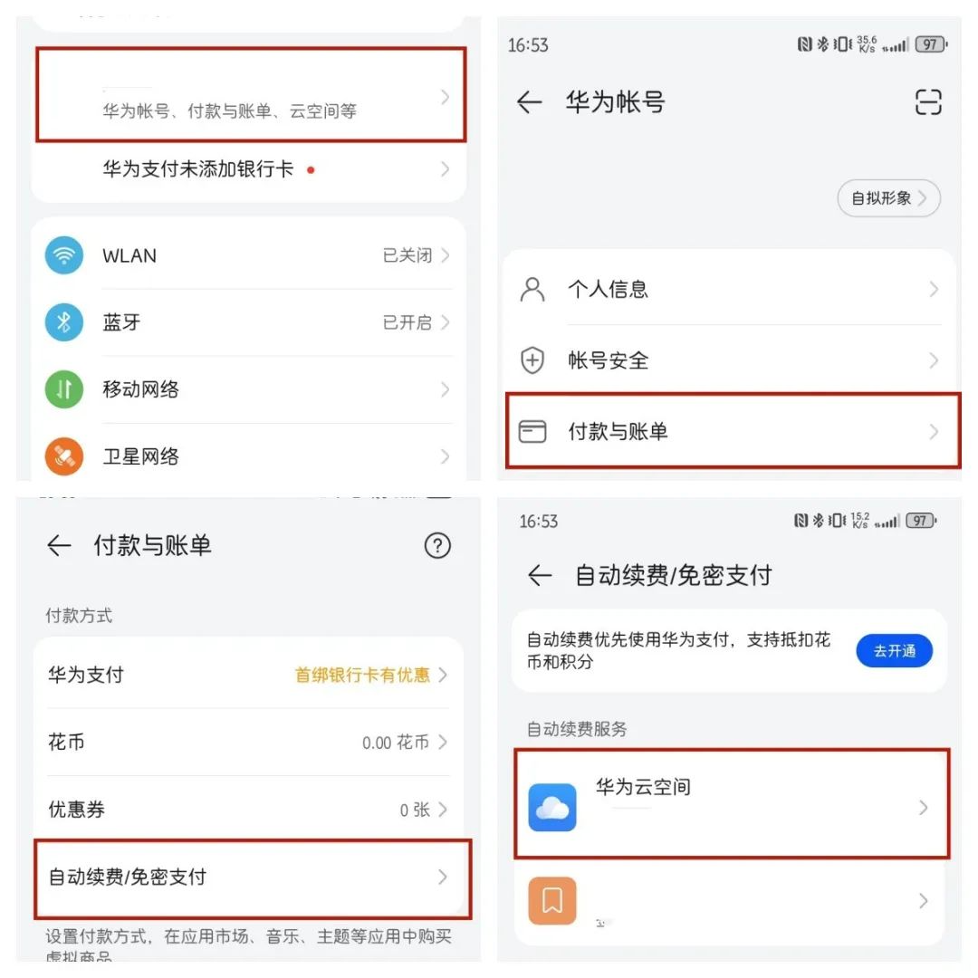 進入設置→華為賬號、付款與賬單、云空間等→付款與賬單→自動續(xù)費/免密支付→退訂App業(yè)務即可。
