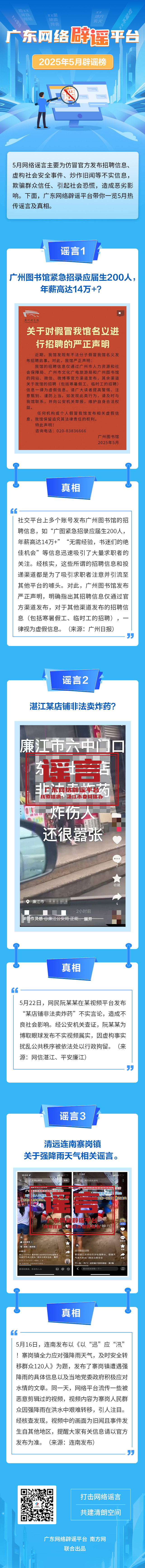 廣東網(wǎng)絡辟謠平臺2025年5月辟謠榜