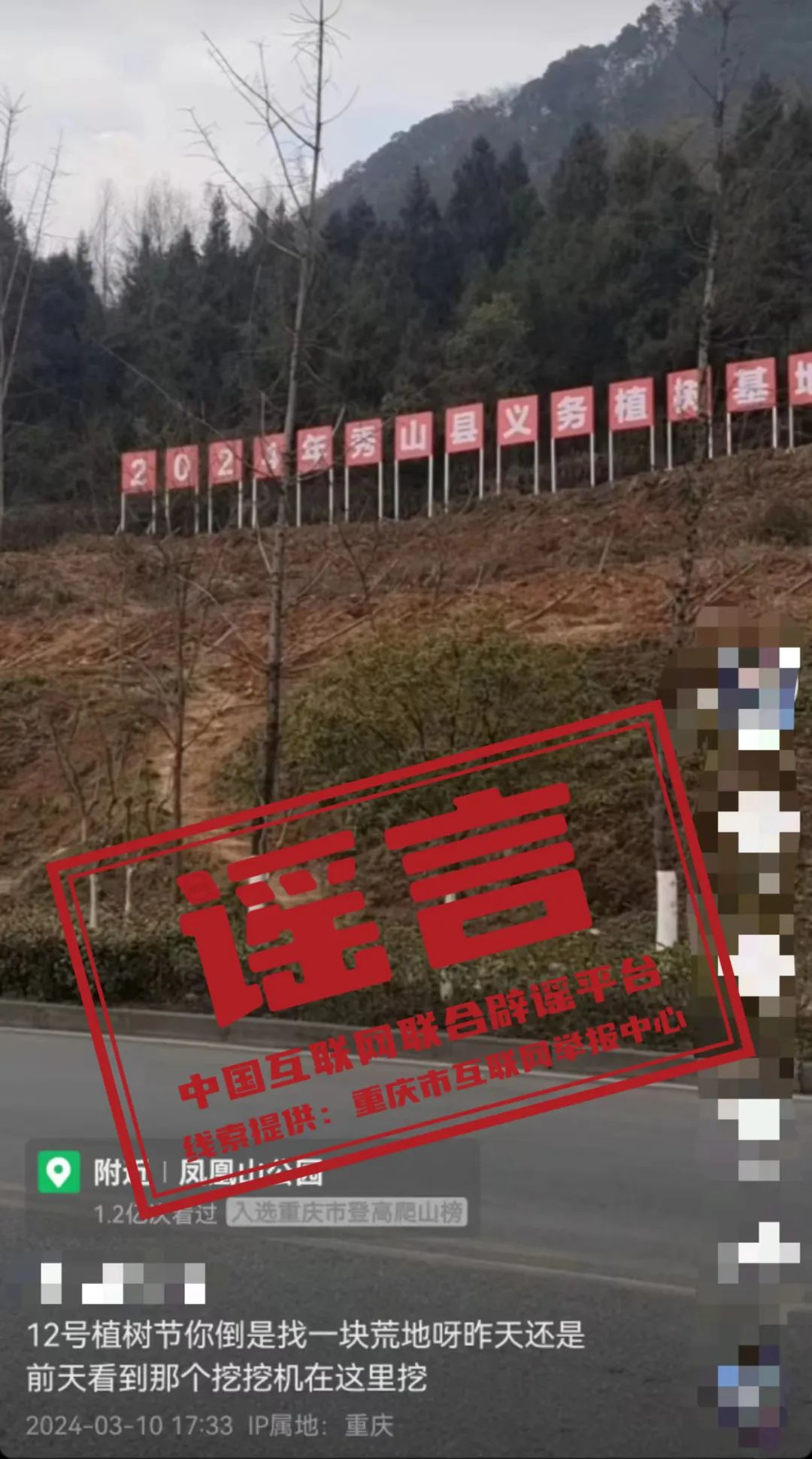 謠 言 重慶市秀山縣鳳凰山公園把原有樹木挖了來(lái)辦植樹節(jié)?
