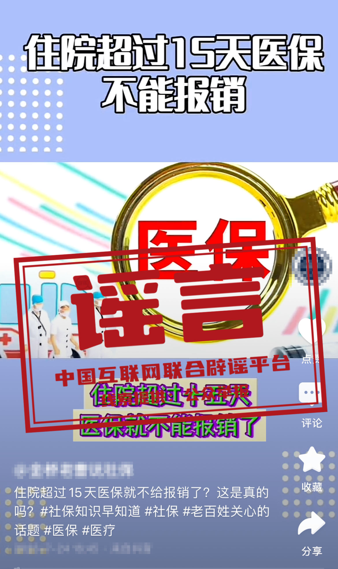 謠 言 單次住院不能超過15天,否則醫(yī)保無法報銷?