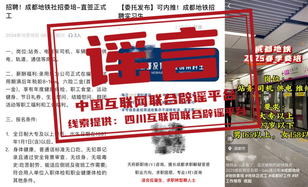 謠 言 成都地鐵招聘“提前預定名額”?濟南地鐵校園招聘有“真題”?