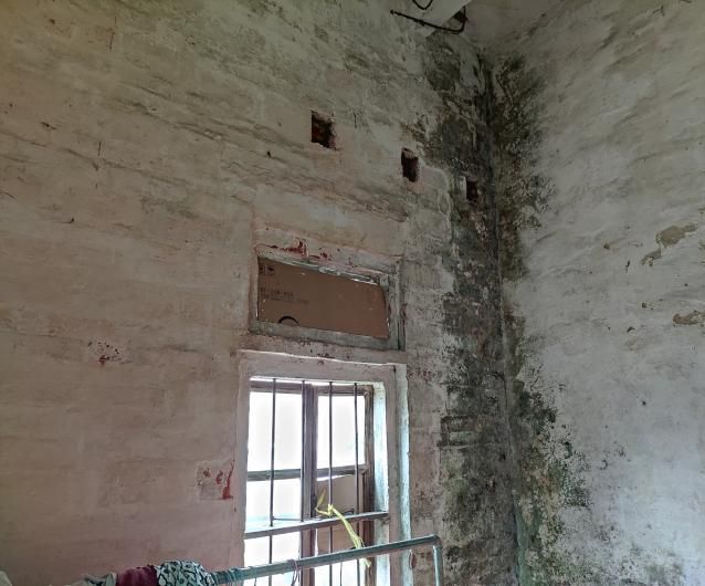 當(dāng)天下午,兩名向日葵社工來到了阿耿家中,阿耿看到社工的到來,仿佛看到了希望的曙光。阿耿家非常的破舊,是一幢年久失修的紅磚房,門窗都是木頭制成的,已經(jīng)破爛不堪。進(jìn)到房子里面,看到阿耿現(xiàn)在是把廚房用具搬到了客廳,本來就小的客廳顯得更加的擁擠。幾句寒暄過后,阿耿帶社工去到出現(xiàn)漏水情況的房間,一進(jìn)到房間,社工就發(fā)現(xiàn)房間墻身已經(jīng)出現(xiàn)了非常嚴(yán)重的發(fā)霉情況,甚至有部分墻壁還長出了青苔,阿耿說:“這已經(jīng)出現(xiàn)很長一段時間了,前段時間下雨,墻壁一直滲水,這個房間原本是我住的房間,因為滲水情況越來越嚴(yán)重,就搬到旁邊原來作為廚房的房間居住,而且窗戶的玻璃都已經(jīng)全部掉落了,現(xiàn)在這個房間已經(jīng)完全不能住人了?!卑⒐⒄f完,就告訴社工還有另一處漏水的地方。看到另一處漏水的地方,社工發(fā)現(xiàn)墻壁因長期滲水導(dǎo)致墻面剝落且墻體分離,到處都是霉斑。阿耿表示,這是漏水情況最嚴(yán)重的房間,房子的其他地方也出現(xiàn)了不同程度的漏水,隨后,阿耿把社工帶到客廳,把其他漏水的地方和情況也向社工反饋。社工看到阿耿現(xiàn)在居住在如此破爛的房子,不禁感到一陣酸楚,同時也跟阿耿商討著怎樣去解決漏水的問題。