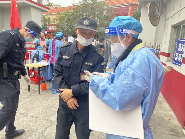 “疫情就是命令、防控就是責(zé)任”。三鄉(xiāng)鎮(zhèn)禁毒社工穿上隔離防護(hù)衣在核酸檢測(cè)采樣點(diǎn)指引居民有序排隊(duì),耐心講解核酸檢測(cè)流程,協(xié)助居民完成粵核酸個(gè)人資料填寫。同時(shí),安撫群眾因排隊(duì)時(shí)間長(zhǎng)而產(chǎn)生的不良情緒,爭(zhēng)取群眾對(duì)疫情防控核酸檢測(cè)工作的支持和理解,也利用此時(shí)間間隙向前來做核酸檢測(cè)的群眾傳達(dá)如何預(yù)防和杜絕毒品,有力提高了居民的禁毒意識(shí)和防疫情能力。