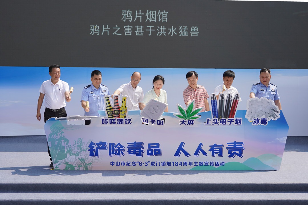 6月2日上午,中山舉行紀念“6·3”虎門銷煙184周年暨創(chuàng)建無毒村居主題宣傳活動。市禁毒辦、市公安局等單位代表近500人參加活動。