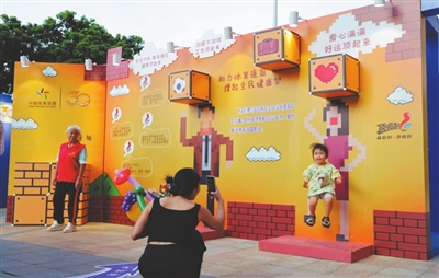 主題活動(dòng)現(xiàn)場(chǎng)氣氛火熱,各項(xiàng)互動(dòng)游戲備受歡迎,尤其是歐洲杯快樂(lè)操場(chǎng)環(huán)節(jié),豐富的足球元素讓不少體育迷和小朋友流連忘返,紛紛拿出手機(jī)留影;“頂”起來(lái)拍照墻,歡樂(lè)氣氛十足的互動(dòng)區(qū)域,讓參與其中的市民充分感受體育的魅力。