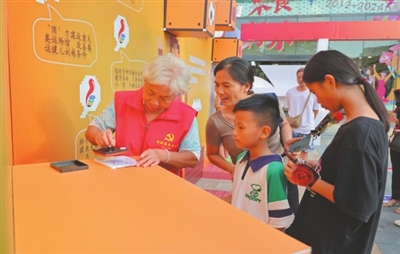 工作人員現(xiàn)場(chǎng)向市民發(fā)放宣傳資料。